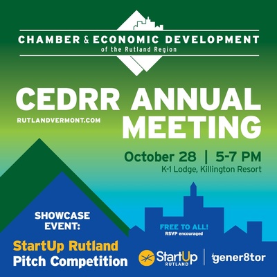 The Chamber & Economic Development of the Rutland Region (CEDRR) is hosting its Annual Meeting. Join us at the K-1 Base Lodge at Killington Resort for networking, food, and drinks!