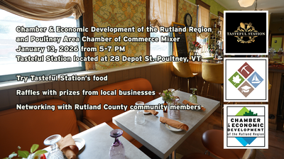 The Chamber & Economic Development of the Rutland Region (CEDRR) and the Poultney Area Chamber of Commerce (PACC) are collaborating for a January Mixer hosted by Tasteful Station in Poultney.