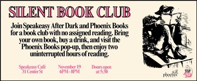 Hosted by Speakeasy After Dark & Phoenix Books, this book club has no assigned reading - bring your own book, grab a drink, browse the Phoenix Books pop-up, and enjoy two hours of quiet reading. Free & open to all.